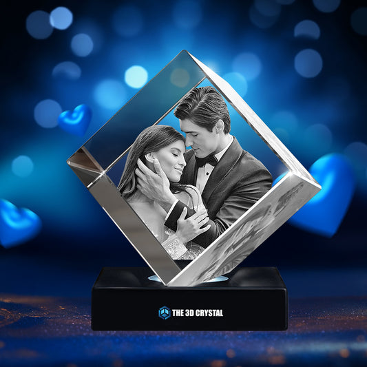 Custom 3D Crystal Cube Photo Frame with LED Lights – Anniversary Gift