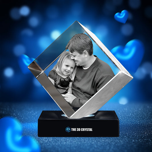 Custom 3D Crystal Cube Photo Frame with LED Lights – Father's Day