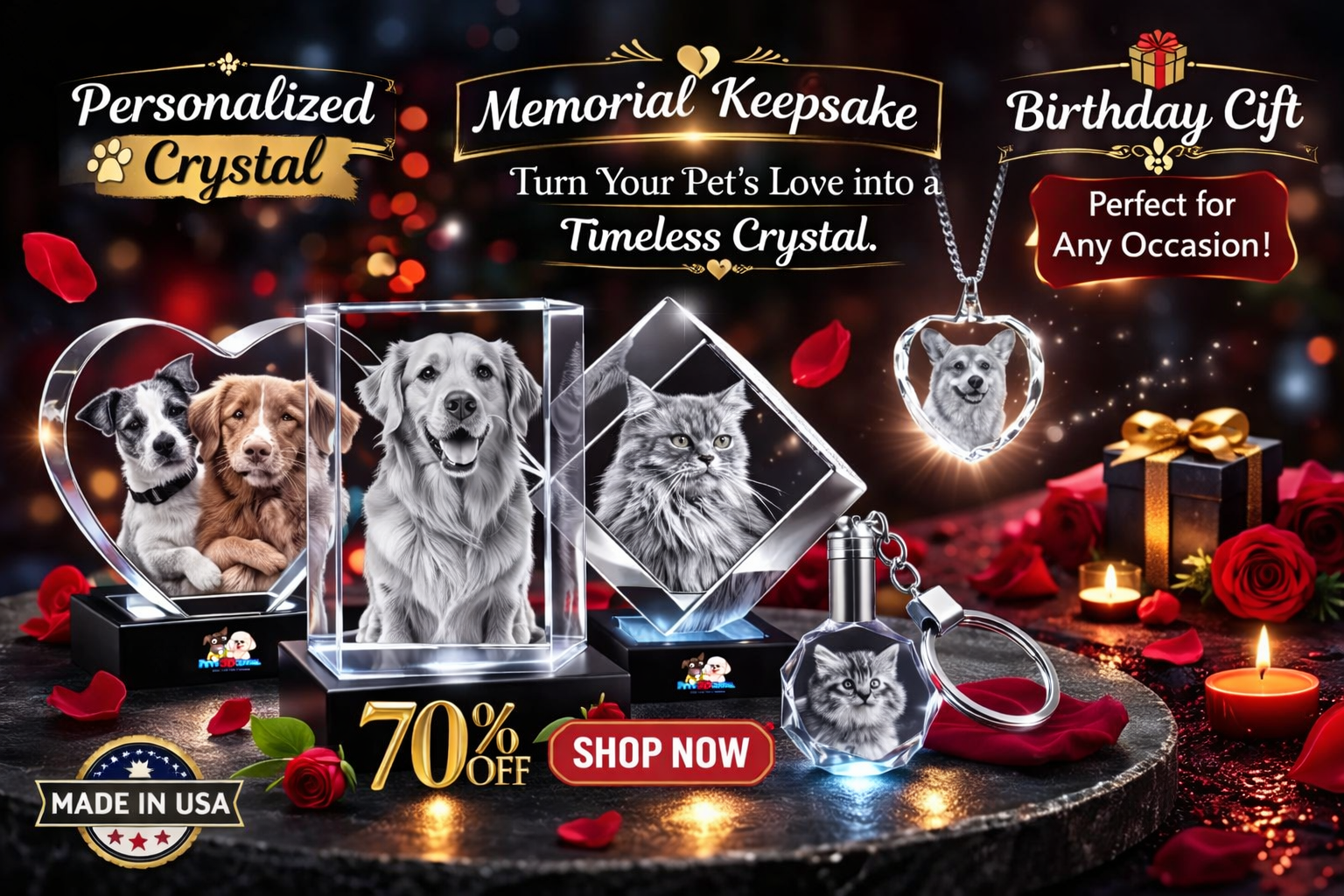All our 3D crystal goods are made in Las Vegas California, USA.